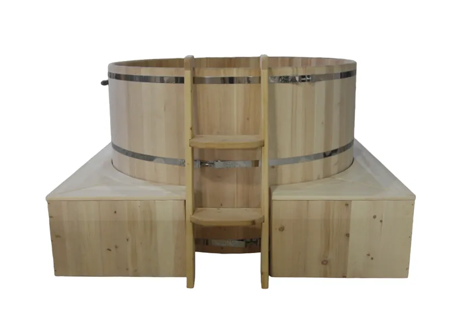 Небольшой подиум из кедра с двумя ступенями, отлично подойдет для купелей и ванн небольшой высоты - 1000 мм.