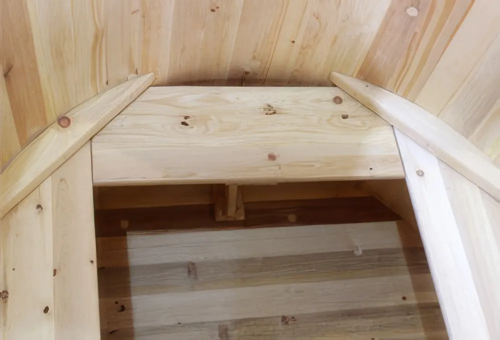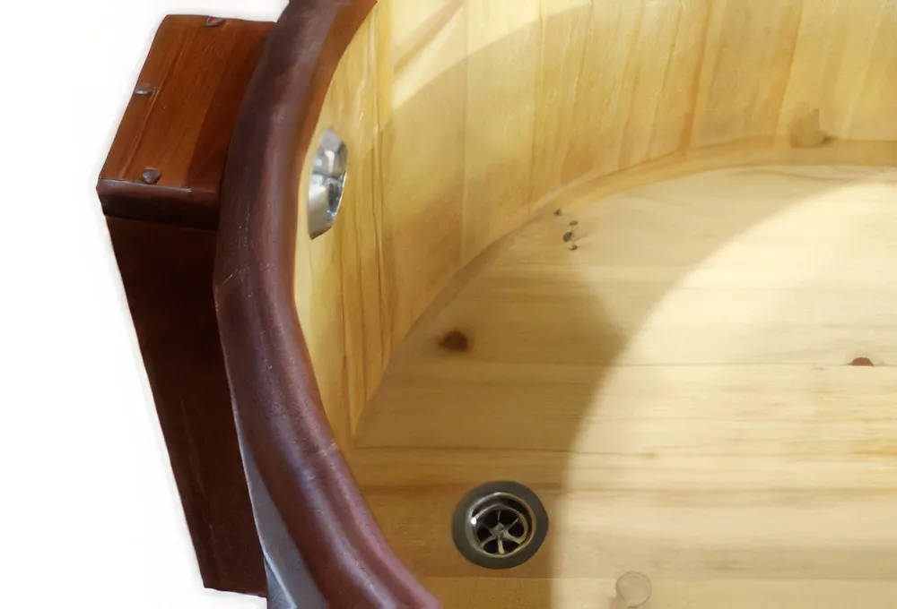 Особенность этой модели заключается в сборке купели по технологии лунный-паз. Паз (углубление) одной доски прочно соединяется с выемкой следующей. Такая сборка осуществляется без клея и гвоздей. Готовая конструкция прочно фиксируется нержавеющими обручами. Пластиковая вставка придает изделию красивый внешний вид, увеличивает срок службы и облегчает уход за купелью. Для удобства пользования купель оснащена лавочками, приставной и внутренней лестницей из кедра. Подходит для комнатного и уличного использования.